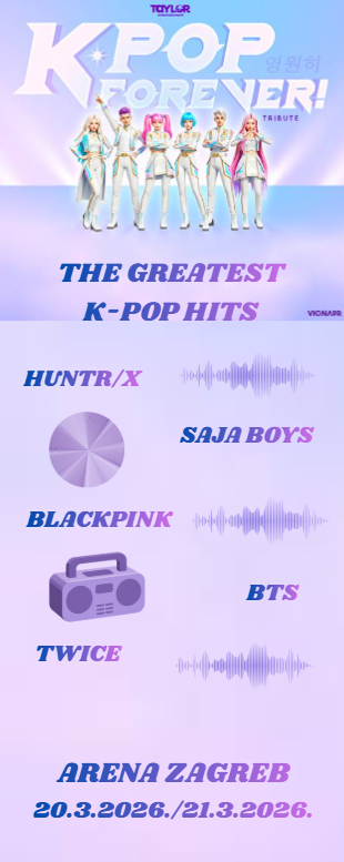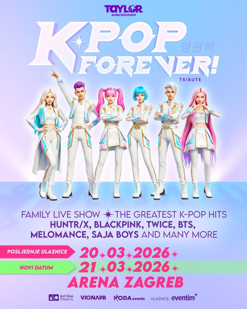 Glazbena scena u ožujku 2026. u mnogim europskim gradovima označena je dolaskom K-Pop Forever!, velikog koncertnog spektakla koji slavi fenomen korejske pop-glazbe. Radi se o sveobuhvatnoj koncertnoj produkciji inspiriranoj globalnim uspjehom K-pop kulture i Netflixovim animiranim filmom K-POP Demon Hunters, uključujući dinamične glazbene izvedbe, atraktivne plesne točke i impresivne vizualne efekte koji prate najpoznatije hitove scene.